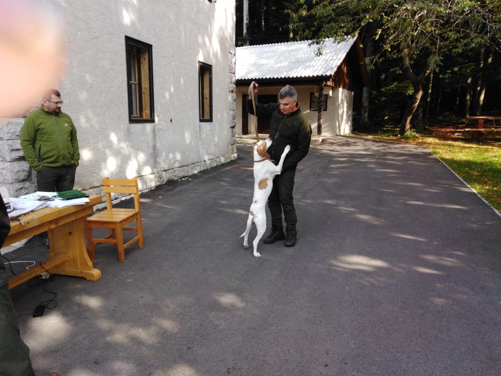 V sobota 02.10.2021 smo se zbrali pred lovsko kočo LD NANOS. V lepem sicer nekoliko hladnem vremenu smo najprej ob kavici in čaju opravili administrativne zadeve: pregled rodovnikov, knjižic o cepljenju ter kontrola čipov pri psih. Po začetnem nagovoru vodje prireditve , je besedo prevzel starešina LD Nanos Ambrožič Miloš in predstavil lovsko družino in njeno delovanje. Isti govornik je v imenu sodnikov predstavil načrt in zahteve , ki jih od psov pričakujejo za uspešno opravljeno preizkušnjo. Žal smo izvedeli, da bo eden od sodnikov iz osebnih razlogov nekoliko zamudil in se vodnikom v njegovem imenu opravičujemo.